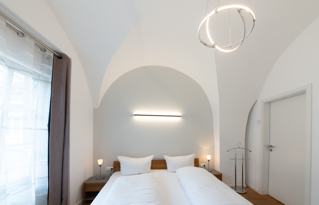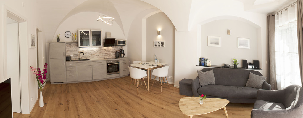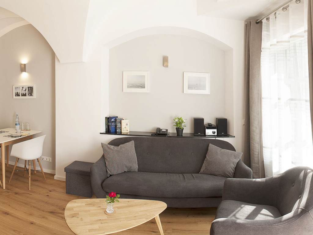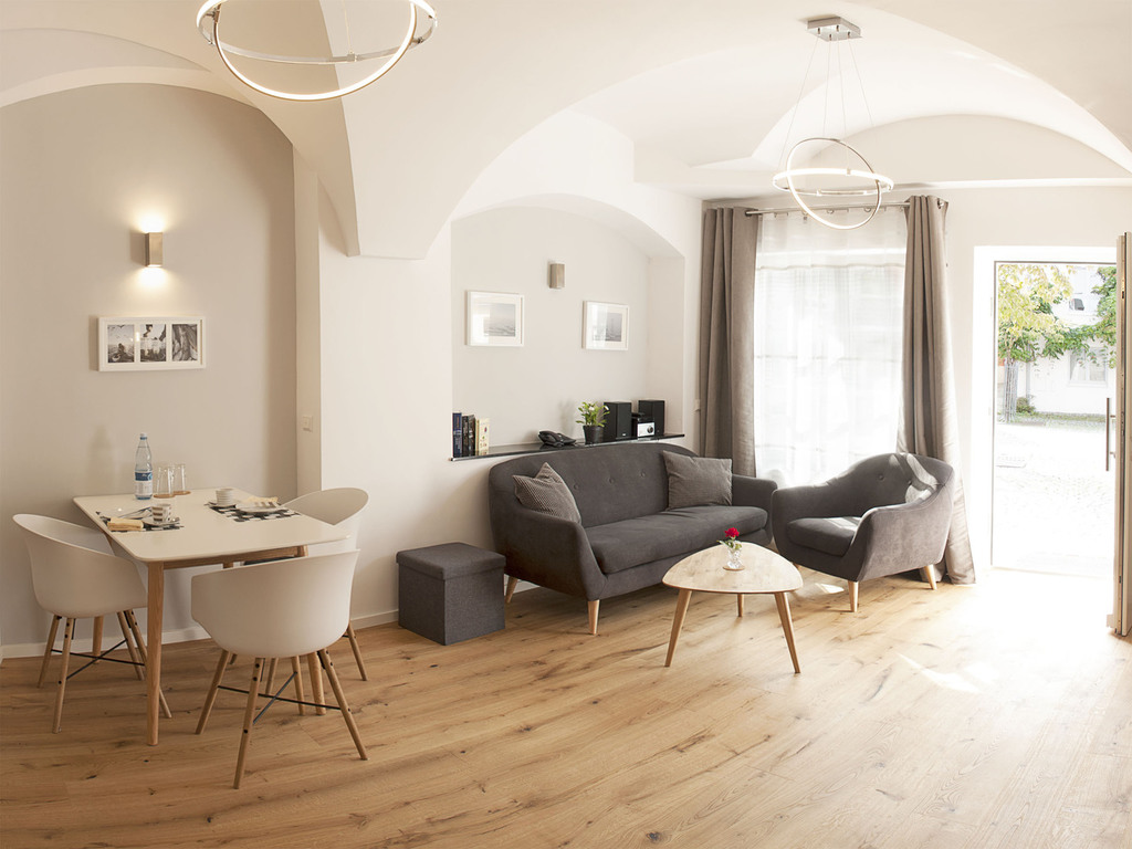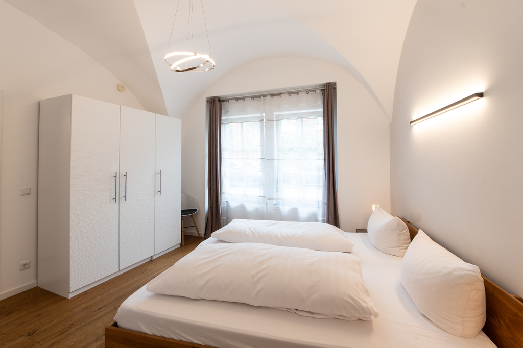 Im Wohnbereich und im Schlafzimmer befindet sich ein historisches Gewölbe welches dem Appartement ein einzigartiges Ambiente verleiht.
